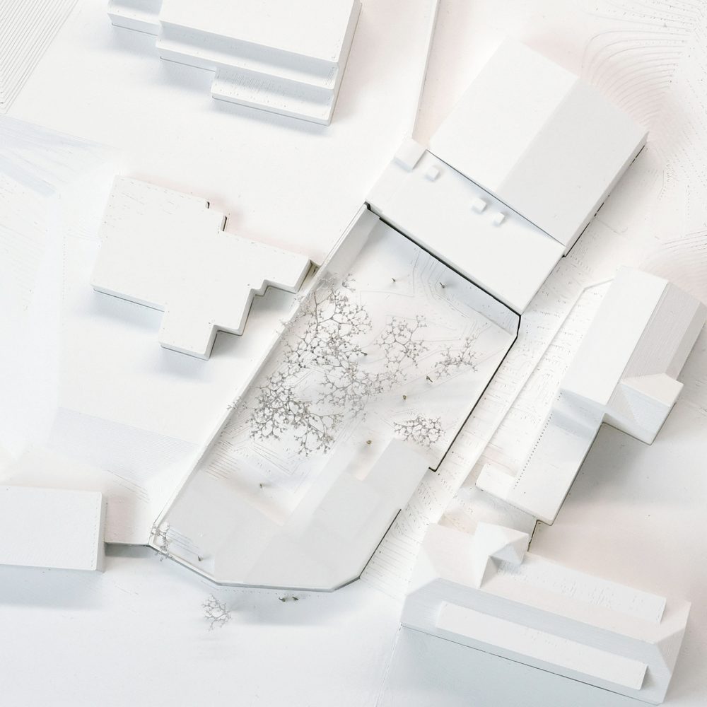 Unsere Lösung: ein bewusst eingeschossiger Neubau wie eine filigrane Krone auf einer alten Gartenmauer, ein poetisches Zelebrieren des Gartens für die Bildungseinrichtung.