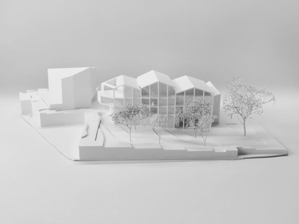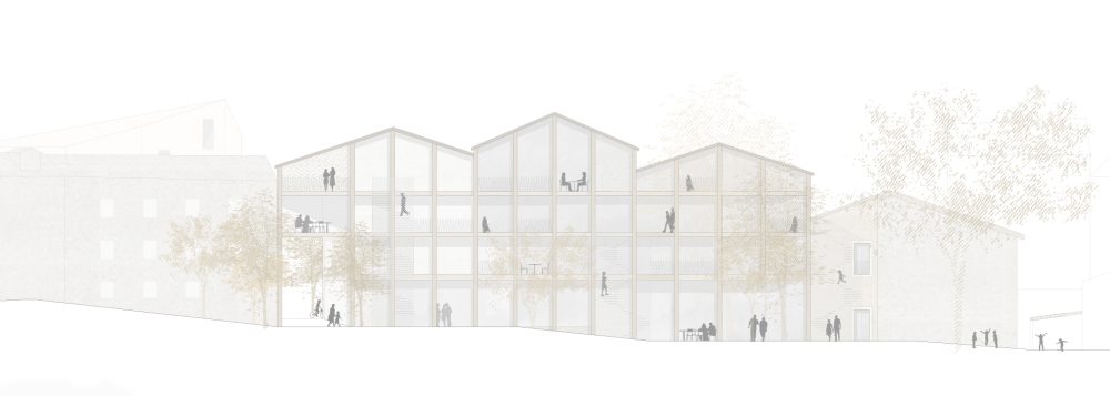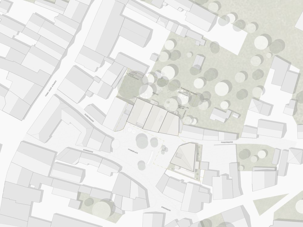 Mitten im historisch gewachsenen Herzen neu zu bauen – ist wie eine OP am offenen Herzen….sensibel schliesst eine gestaffeltes Häuserensemble den Platzrand, über eine Markthalle in der Erdgeschoßzone wird der dahinter liegende Grünraum halböffentlich erlebbar. Den fehlenden Schlußstein für die Platzbildung markiert ein neuer selbstbewusst stehender Solitärbau. Große Bedeutung hat hier für uns die Dachlandschaft als 5. Fassade – ist sie doch von weit her sichtbar und Charakter gebend für das Stadtzentrum. Aber – wie so oft: ein der Jury (fast) verborgen gebliebener Schatz – für den Sprung auf´s Stockerl hat´s gerade noch gereicht.