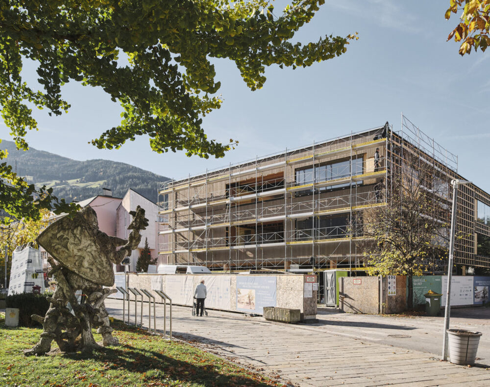 Wattens ist die „Swarovski Town“ – man denkt an Glitzer & Glanz & gebaute Wunderwelten. In diesem Kontrast und im Gegensatz zur gewachsenen Struktur im heterogenen Stadtbild am Kirchplatz steht ein einfacher Baukörper. Die Schlichtheit dieses Holzbaus gibt der neuen Volksschule die Kraft in dem lauten Gefüge der Nachbarschaft Präsenz zu haben. Das zentrale Grundstück wird mit einem minimal möglichen Fusßabdruck bebaut – auch hier wollen wir Musterschüler im Thema Nachhaltigkeit sein. Die Innenräume im Holzhaus lassen das Prinzip „offener Raum – offener Geist“ zu. Wir sind hier absolute Streber  um  als Einserschüler mit Vorzug die neue alte Schule zu bauen.